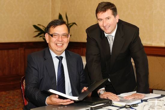 Declan Billington, left, NIGTA President with Osvaldo Mauro-Hun, Chief Executive, Rose Energy who was the guest speaker at this months NIGTA meeting in Hollywood.