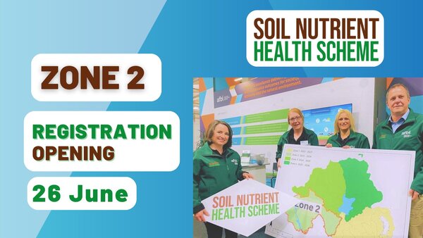 On 26th June, zone 2 of the Soil Nutrient Health Scheme (SNHS) opened, covering Fermanagh, the west of Country Armagh and South Tyrone. Farm businesses located in these areas are strongly encouraged to register for the scheme using the following link - www.daera-ni.gov.uk/onlineservices. Participating in the scheme is a condition of receiving future funding from DAERA such as the new Farm Sustainability Payment. The closing date is 31 August 2023.