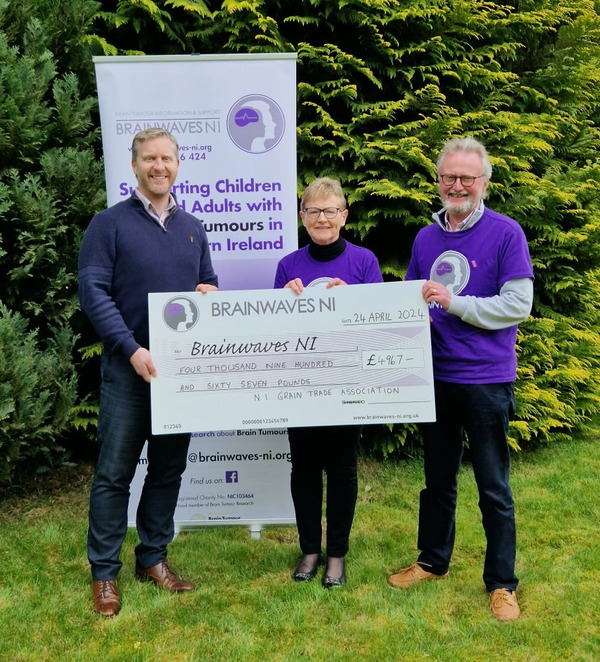 Brainwaves NI, a volunteer-led charity dedicated to supporting individuals affected by brain tumours, and funding research to treat and ultimately cure brain cancer, was the chosen charity to benefit from funds raised at the Northern Ireland Grain Trade Association’s 57th Annual Dinner held in April.