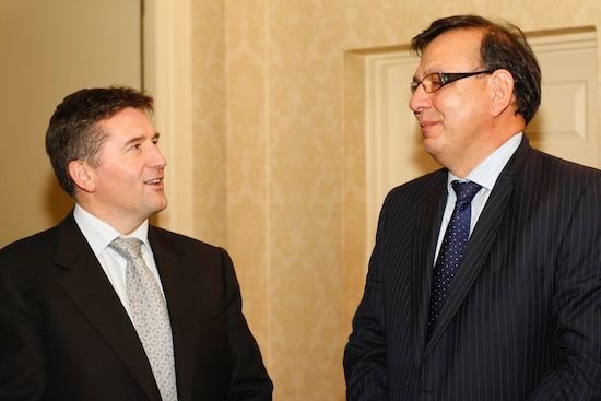 Declan Billington, left, NIGTA President with Osvaldo Mauro-Hun, Chief Executive, Rose Energy who was the guest speaker at this months NIGTA meeting in Hollywood.